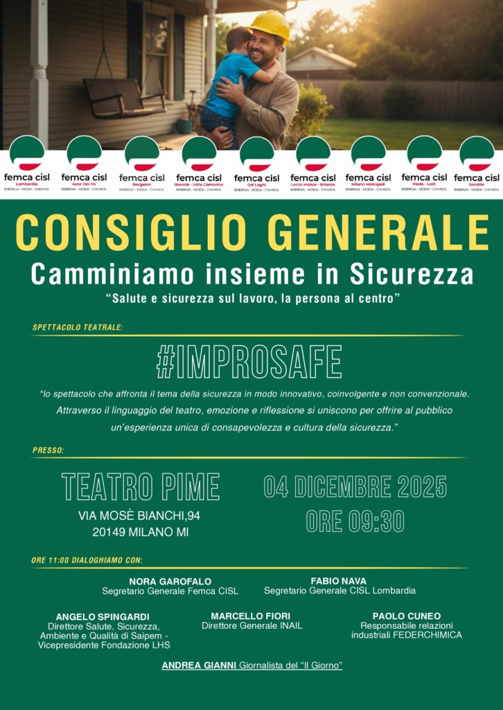 Domani 4 dicembre alle ore 09.30 presso il Teatro Pime di Milano per la prima volta nella storia della Femca Lombardia sono stati convocati tutti i Consigli Generali degli 8 territori regionali su un tema cruciale e sempre più urgente che ci vede particolarmente attenti, quale quello della formazione sulla salute e sella sicurezza nei luoghi di lavoro.