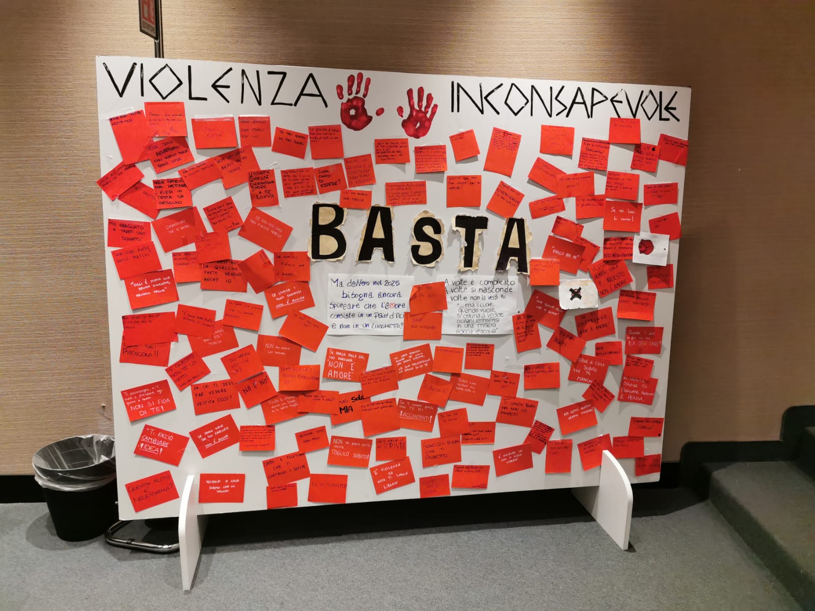L’esposizione, inaugurata lo scorso 30 gennaio, nasce dal lavoro dei ragazzi e delle ragazze di quarta annualità in rappresentanza dei settori alimentare, meccanico e benessere, ed è composta da cartoncini rossi con frasi, pensieri e riflessioni e da magliette “parlanti” che raccontano le molte forme, spesso invisibili, della violenza psicologica. Un linguaggio semplice, diretto, che mette al centro parole, silenzi, controlli, manipolazioni e umiliazioni che troppo spesso vengono minimizzati.